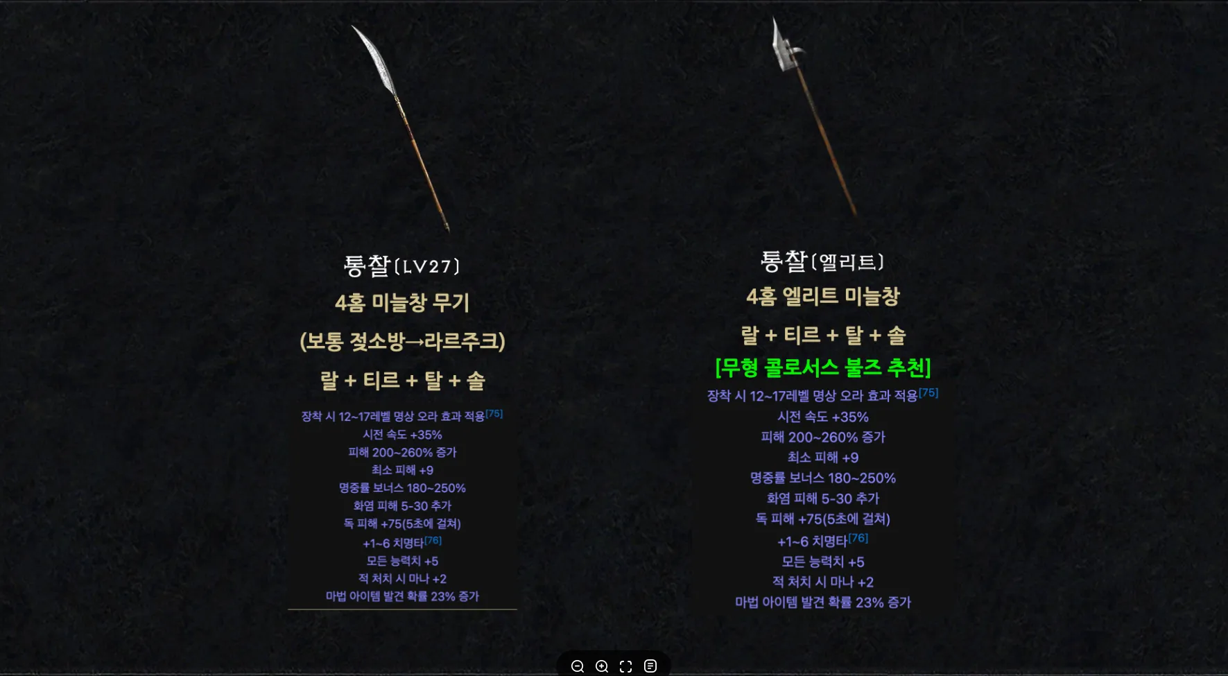 • 고대 통로(Ancient Tunnels): 2막 잊혀진 사원 하위, 냉기 면역이 없어 물리 빌드에 유리
