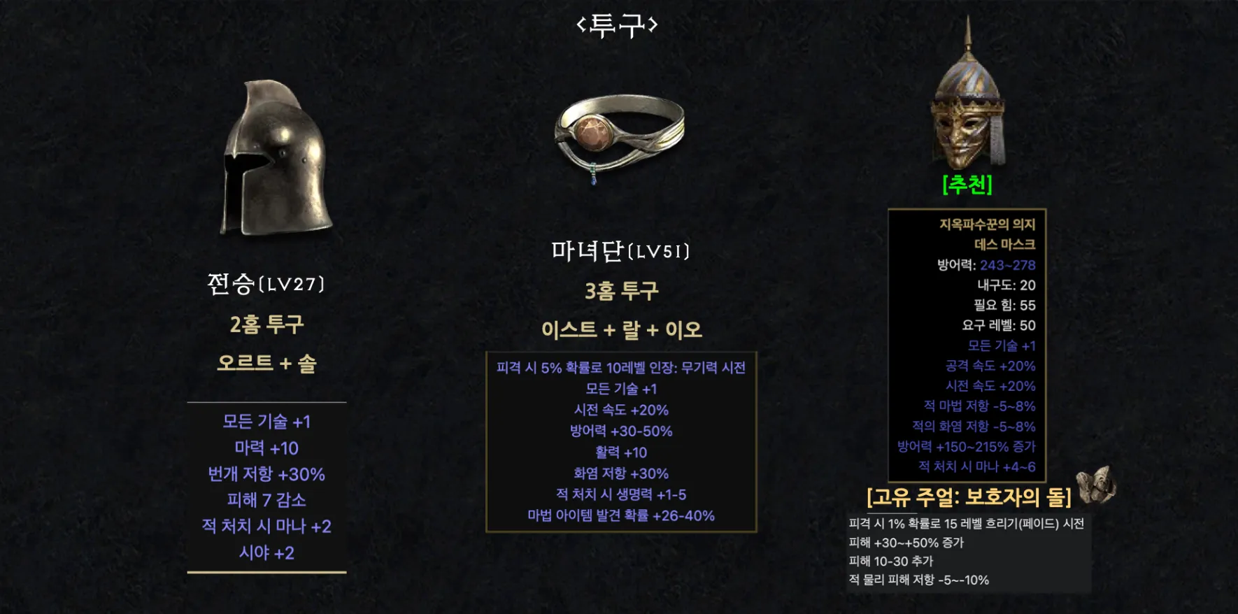 투구 로어(Lore) 룬워드 할리퀸 크레스트(Shako)