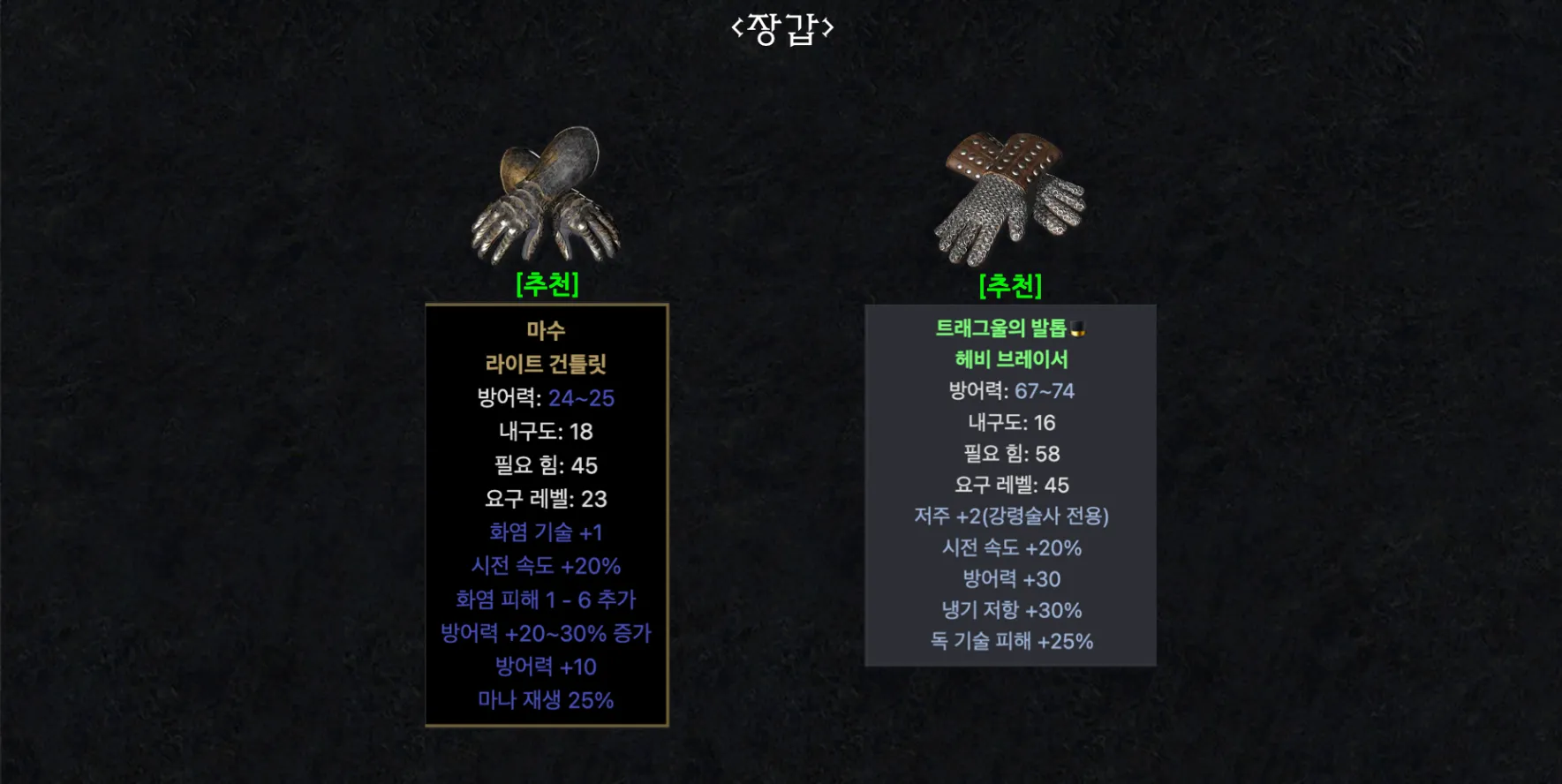 • 스탯 배분: 힘은 장비 착용에 필요한 만큼만 투자하고, 나머지는 체력에 올인합니다