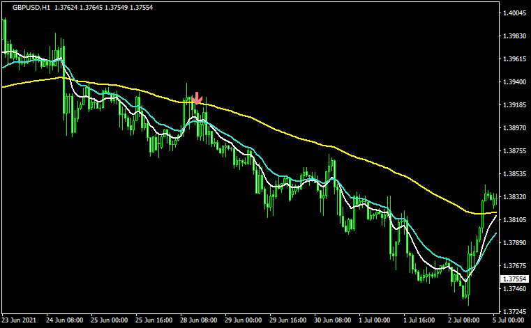 • 100EMA(長期)よりも20EMA(中期)と10EMA(短期)が上にある